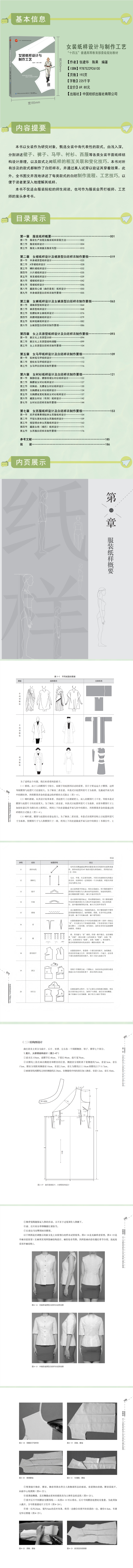 《女装纸样设计与制作工艺》以女装作为研究对象,甄选女装中有代表性的款式,由浅入深,分别讲述裙子、裤子、马甲、衬衫、西服等各类女装平面纸样结构设计原理,以及款式之间纸样的相互关联和变化技巧。本书对所有涉及的款式都制作了白坯样衣,并通过真人试穿以验证其穿着效果。此外,全书图文并茂地讲述了每类款式的白坯制作流程、工艺技巧,以便于读者更深入地理解其纸样。 《女装纸样设计与制作工艺》不仅适合服装院校的师生阅读,也可作为服装业界打板师、工艺师的案头参考书。 |