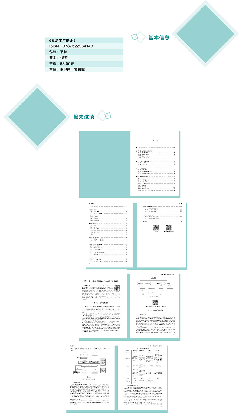 《食品工厂设计》以OBE为理念,以食品专业学生的“擅设计、懂管理、守伦理”的食品工程设计能力为目标,教材主要特点是以产业真实的食品工程项目为主线,以工艺设计为核心,图文并茂,主要内容包括基本建设程序和工厂设计的内容、厂址选择、食品工厂总平面设计、工业建筑基础知识、食品工厂工艺设计、食品工厂辅助部门、食品工厂卫生设计、公用工程、食品工厂安全生产与环境保护、基本建设概算、技术经济分析等。教材引入大量案例讲解各个项目方案的设计方法、依据和原则、步骤,并嵌入案例。可作为大专院校食品科学与工程、食品质量与安全专业和相关专业的教材,也可作为相关领域科研人员、企业工程技术与管理人员以及其他希望了解食品工厂设计知识的读者的参考资料。 |