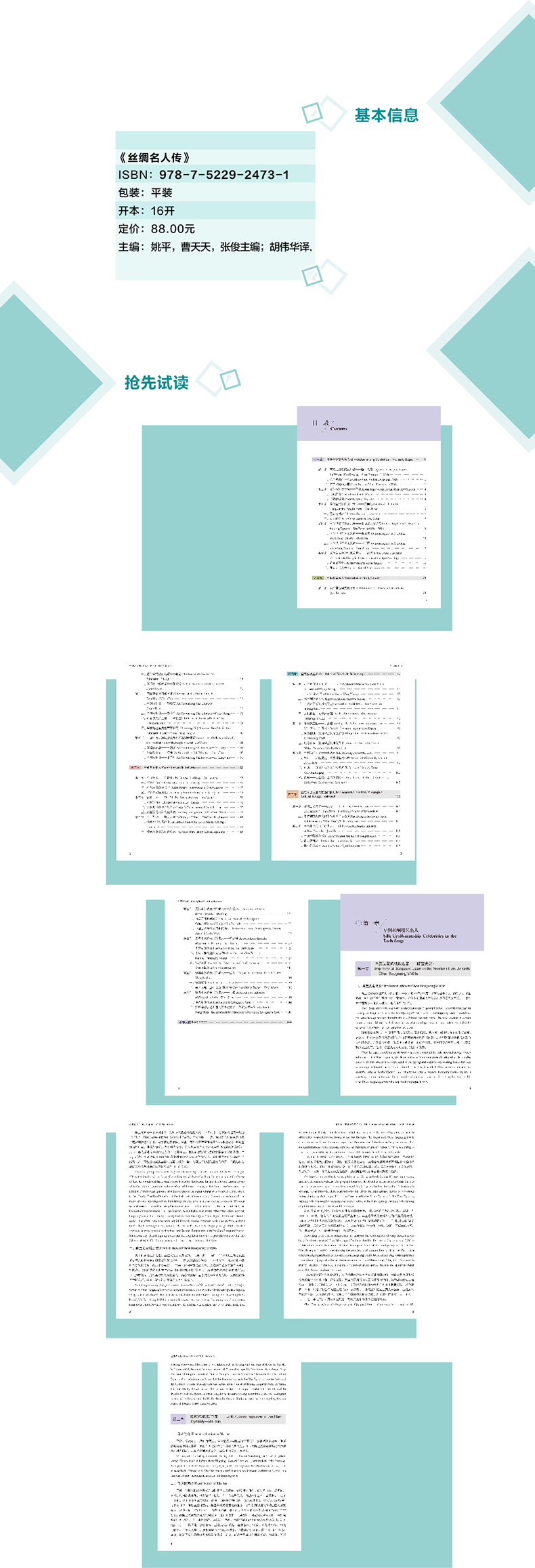 This book uses the methods of “historical sequence” and category distinction” to sort out silk celebrities and interpret their deeds in detail. The book is divided into five chapters: Silk craftsmanship celebrities in the early stage, celebrities of silk education, celebrities of silk industry, celebrities of silk skills reforming, and representative inheritors of intangible cultural heritage—silk craft. It is characterized by clear structure, lucid logic, rich content, concise language, proper explanation and easy to understand, which has both distinct foundation and strong practicability. This book can be used as a reference book for the teaching of fine traditional Chinese culture.This book can not only be used as teaching materials for public elective courses of modern textile technology, textile inspection and trade, textile design, textile materials and application in vocational