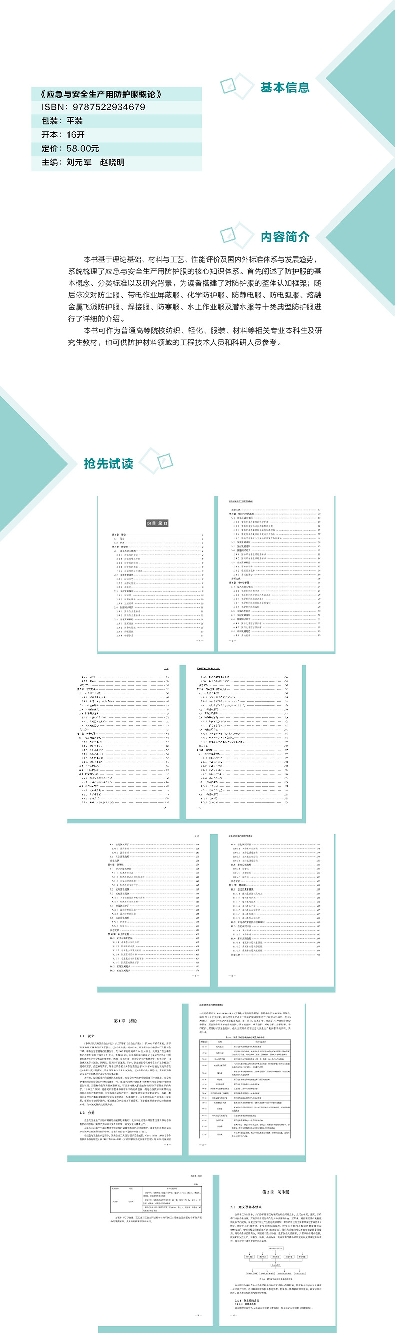 本书可作为普通高等院校纺织、轻化、服装、材料等相关专业本科生及研究生教材, 也可供防护材料领域的工程技术人员和科研人员参考。